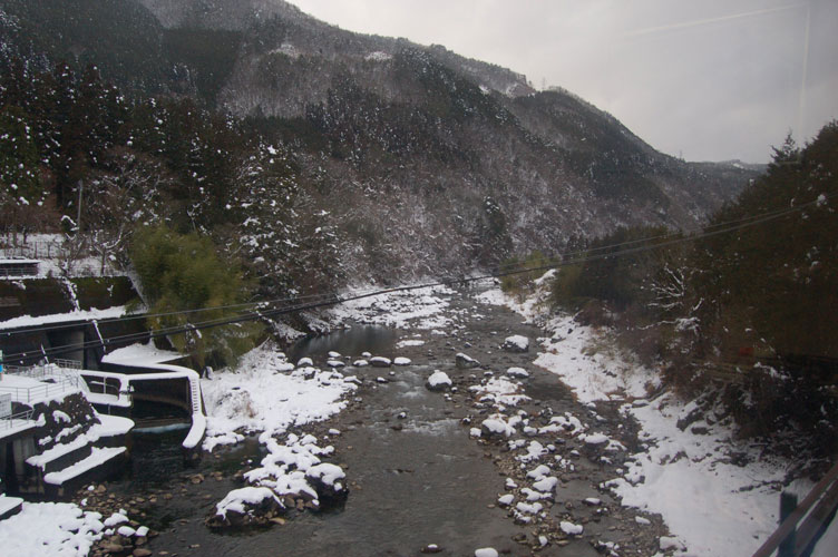 After arrival at Nagoya, I then changed onto the 13:03, Limited Express Wideview Hilda no 9 for the 2 hour 16 minute winding journey through the mountains to Takayama. Words can not explain this journey, and the photos out of the window are not even close to the incredible snow covered scenery for the second half of this trip. Truly breathtaking, seeing mountainous ravines, and slopes with pine trees covered in snow, and endless deep rivers with ice and snow all the way.